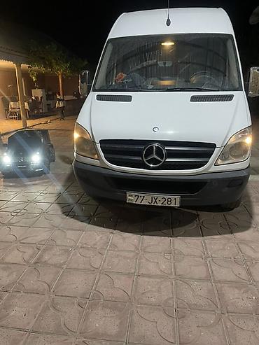 Qeyd: Şəkillərdə Bakı–Qazax yolu istiqamətində hərəkətdə və həyət şəraitində görünür; nömrə nişanları müxtəlif kadrlarda fərqlidir. Sprinter platforması etibarlılığı və geniş yükləmə həcmi ilə tanınır; şəhərdaxili və şəhərlərarası daşımalar üçün münasib seçimdir.