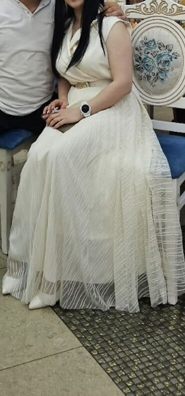 Sərgi malıdır . 500 azn alınıb cəmi 1 dəfə geyinilib . ‼️QİYMƏTDƏ RAZILAŞMAQ OLAR ‼️ Zərif ziyafət/libas - Rəng: şampan-bej - Model: A-kəsim, uzun, dizdən aşağı axıcı ətək - Üst hissə: ipək ef...