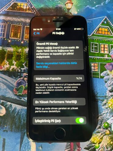 - Batareya: Maksimum tutum 74% (Pillər bölməsində görsənir), “İyileştirilmiş Pil Şarjı” aktiv. - Rəng: Jet Black/Black (qara) Təmiz çəkir Real aliciya endirim olacağ