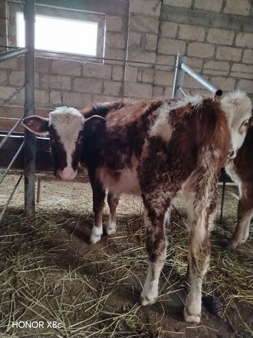 Satılır: 2 baş erkək iribuynuzlu heyvan (buğa) - Rənglər: biri qara-ağ başlı, digəri açıq krem rəngli. - Boy-buxun: ətli, uzun bədən quruluşu, geniş döş və möhkəm ayaqlar. - Yaş qrupu: şəkillərə ə...Razılaşma yolu ilə
