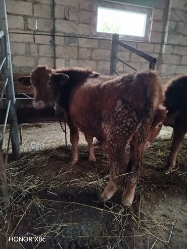 Məhsul: buynuzlu heyvanlar Xüsusiyyətlər:8 ayin icinde boqazdi - Rəng: açıq-qəhvəyi və qəhvəyi-ağ ləkəli fərdlər - Bədən quruluşu: geniş arxa, möhkəm gövdə, uzun ayaqlar - Buynuzlu heyvanlar üçü...