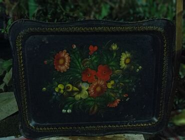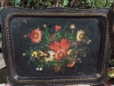 - Bəzək: əl işi kimi görünən yağlı boya üslubunda çiçək rəsmi; kənarlarda qızılı naxışlı haşiyə