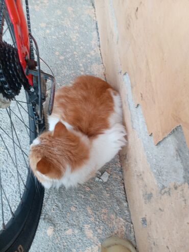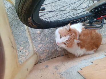 Şəkillərdə pişik velosiped təkəri yanında və divar kənarında dincəlir; rəng kombinasiyası və tüklü quyruğu aydın görünür. Pişik sevənlər üçün ailəyə uyğun, mehriban ev heyvanı. Ve ev pisiy idi alan razi qalar ucuz qiymete