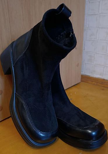 Qadın qış botları - Rəng: qara, metalik yazılı detallarla - Material: parıldayan suya davamlı üst hissə, içi isti süni/xəz astarlı - Bağlama: iplə (qaralı-ağ naxışlı qalın bağlar) - Altlıq: qalın,...