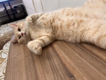 Erkək pişik – yaxşı əllərə verilir. Təsvir: - Rəng: krem/boz tük örtüyü, qısa və sıx. - Sifət quruluşu yastı, böyük başlı və dairəvi qulaqlar – sakit və mehriban görkəm. - Yumru pəncələr, qalın qu...