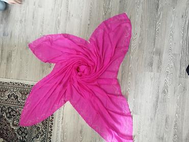 - Fuşya (parlaq çəhrayı) şal: Yüngül, hava keçirmə qabiliyyətli parça, kənarlarda zərif deşikli bəzək xətti. Günlük və ya ziyafət kombinlərinə uyğun.