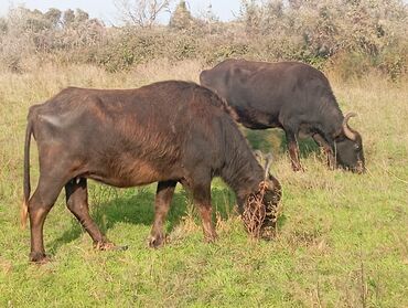 - Şəkillərdə otlaqda bəslənən qara-qəhvəyi rəngli su camışları (hərəsinin qısa, yanlara doğru əyilən buynuzları var).