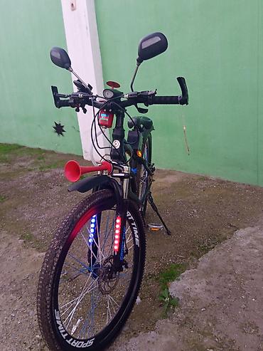 Velonun aksesuarları: Ayaqaltı ağ rəng led ,ön göy, qırmızı led,krılo altında qırmizı led,sağ və sol narıncı amerikanka işıqları və miqalka, ön işiq siqnallı, fifa siqnal, güzgülər qırıqsız, telefon tutan, arxa işiq, təkər işiqları, X ətir və bayraq, antena. 12 volt 9 amper akumlator üstündə adaptırı və s.Təkərləri təzədir.Real alıcıya endirim var.Ölçü 26 dır.