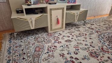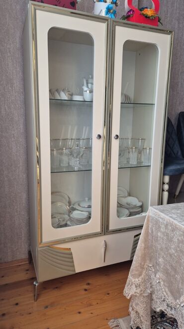 - Şüşəli vitrin şkafı və açıq rəf bölmələri olan TV/servant tipli modullar.