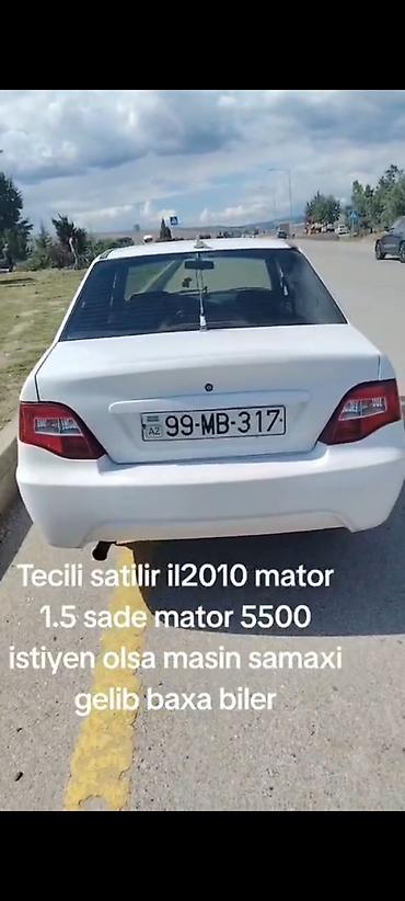 hamıya Allahın salam olsun Daewoo Nexia 1.5 mator 80 at gücü 6.000 AZN satıram son qiyməti pula ehtiyac var deyə satıram 4 dənə təzə təkər təzə akkumulyator yağını təzə dəyismisəm təzə sidenly...