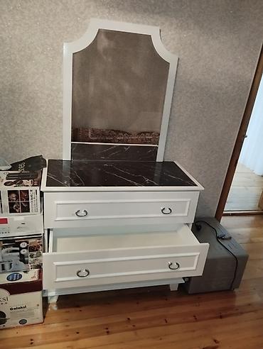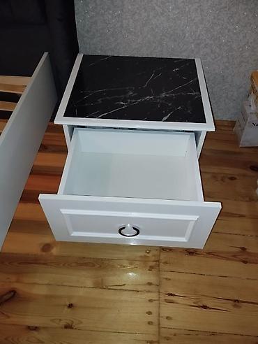 - Tumba: üst səth qara mərmər naxışlı panel, 1 çekmece, metal halqa tutacaq, dayanıqlı ayaqlar.
