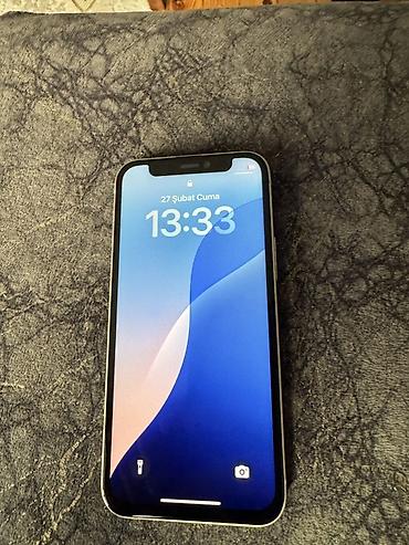 Apple iPhone 12 ağ rəng. - 6.1" Super Retina XDR ekran - İkiqat arxa kamera sistemi: 12 MP geniş + 12 MP ultra‑geniş, True Tone flaş; ön TrueDepth kamera - Face ID - Səssiz keçid düyməsi, səs artır...