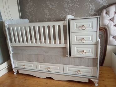 - Dönüştürülə bilən konstruksiya: beşiyin sağ tərəfində komod blok (sonradan ayrılıb ayrıca istifadə oluna bilər)