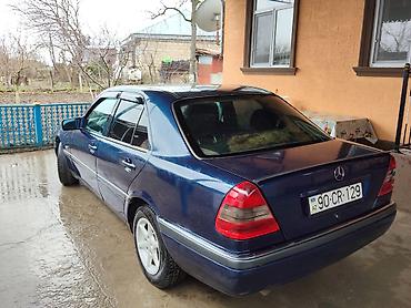 Mercedes-Benz C200 (W202 sedan) - Kuzov: 4 qapılı sedan, tünd mavi rəng - Mühərrik: C200 benzin (emblemdən göründüyü kimi), arxa ötürücülü - Sürətlər qutusu: avtomat selektorlu - Salon: qara/parça...