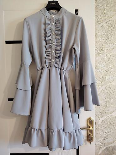 ( daha keyfiyyətli görüntü üçün modelin əynində videosu paylaşılıb, libas əldədir) Göy rəngdə zərif ziyafət/libas 280 manata alınıb - Allegra - Model: midi uzunluqda, 50-lər üslubunda A-kəsim ətək,...