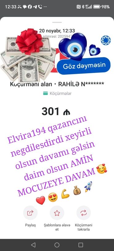 - Qazancların rəqəmsal köçürmə ilə çıxarıla bilməsi göstərilib: 301 ₼.