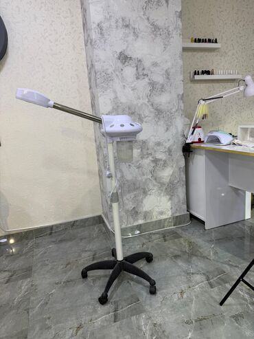 Salon üçün buxar aparatıdır (saç və üz üçün). Təkərli dayaqlı, hündürlüyü tənzimlənən ştativ üzərindədir. Uzun buxar verən qol hissəsi və su rezervuarı mövcuddur. Korpus üzərində: - İdarəetmə düym...