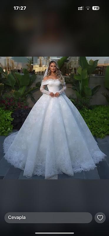 Gəlinlik + iki ziyafət geyimi dəsti razmerler L-XL gedir 1) Ağ gəlinlik: 350 Azn - Klassik A-kəsim, ətəyi həcimli - Üzərində incə güllü naxışlı krujeva - Krujevalı yarı şəffaf uzun qol - Sinə və ...