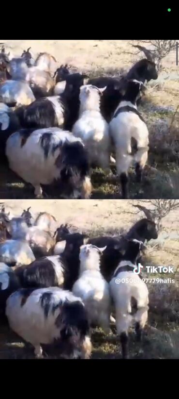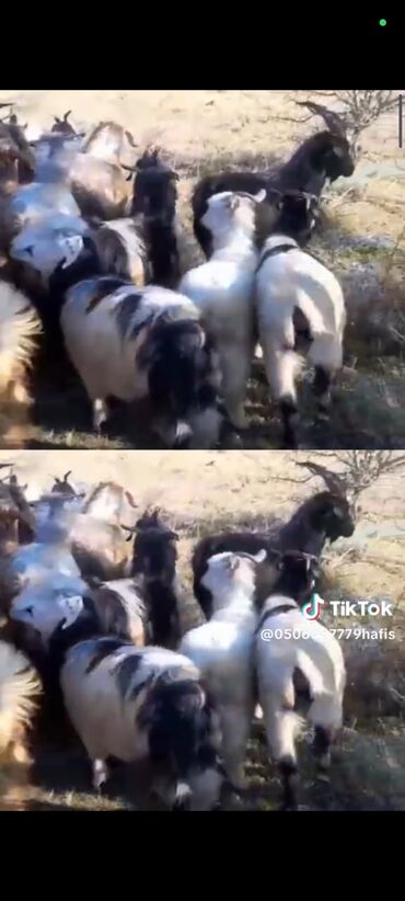Qoyun-keçi sürüsü - Şəkillərdə müxtəlif cinsli qoyun və keçilərdən ibarət kiçik sürü görünür. - Aralarında uzun buynuzlu, ağ-qara rəngli erkək keçi, ağ, qəhvəyi və bej rəngli digər keçilər, həmçin...