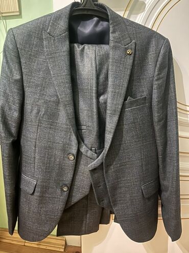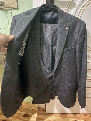 3 hissəli klassik kostyum dəsti – pencək, jilet və şalvar.