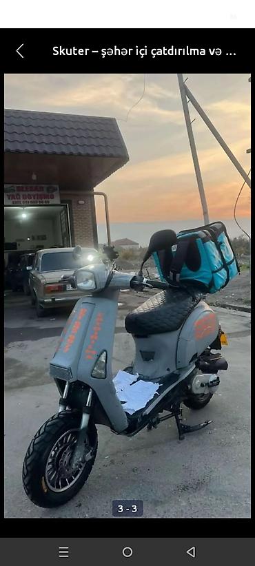 Skuter – şəhər içi çatdırılma və gündəlik istifadə üçün praktik model Xüsusiyyətlər: - Gövdə rəngi: boz, üzərində narıncı yazılar - Ön disk tormoz sistemi - Geniş, relyefli oturacaq və arxa bel da...