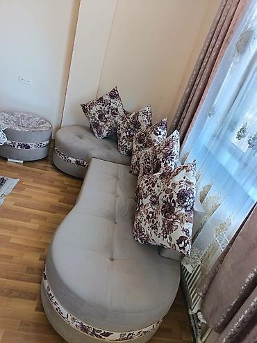 Yataq otağı dəsti – 950 AZN Tərkibi: - 2 nəfərlik çarpayı: geniş başlıq, yumşaq bej rəngli panel üzlüklə; ağ korpus. - 2 ədəd tumba: 2 çekmecəli, dekorativ ağ-qızılı tutacaqlar, oyma ayaqlar. - Ge...