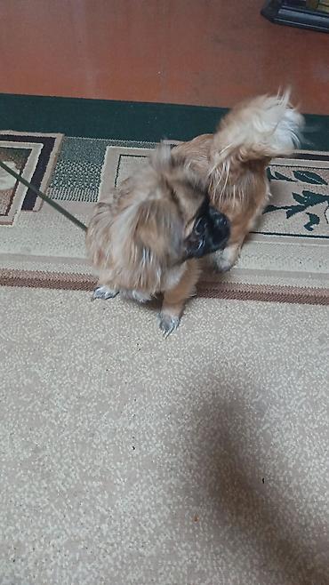 Pekinqlas (Pekingese) cinsi kiçik ölçülü ev iti - Cins: Pekingese (Pekinqlas) - Rəng: qızılı-şabalıd tonlarda, sıx və uzun tüklü örtük - Üz quruluşu: yastı burun, iri ifadəli gözlər, qısa ağızlıq ...