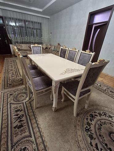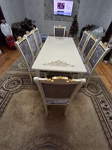 - Dəst: 1 böyük düzbucaqlı masa + 8 ədəd stul