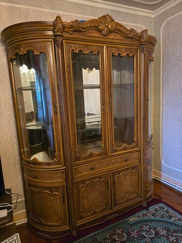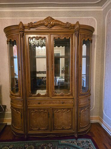 Məhsul: Taxta servand (vitrinli bufet) Təsvir: - Klassik üslubda, oymalı taxta konstruksiya - Üst hissə şüşə vitrinli: qab-qacaq, suvenir və dekor üçün yararlı rəflər - Aşağı hissə qapalı dolab və...
