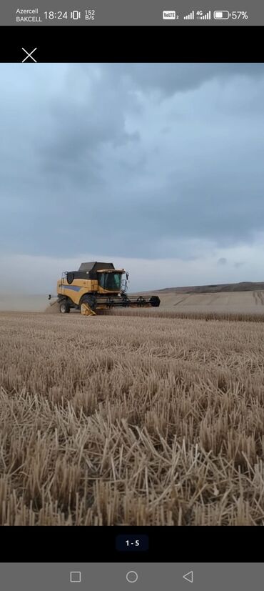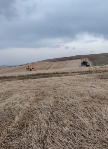 - Geniş sahə: şəkillərdə taxıl (buğda/arpa) əkini üçün biçin aparılan böyük ərazi.