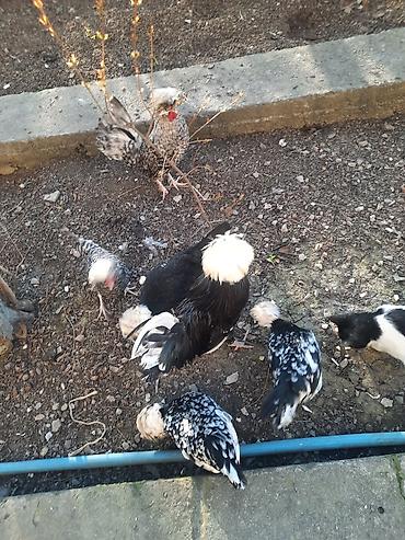 - Cins: ehtimalən Polşa (Polish) dekorativ toyuqları – başında xasiyyətvi ağ “çələng”/tacanabənzər lələk örtüyü.
