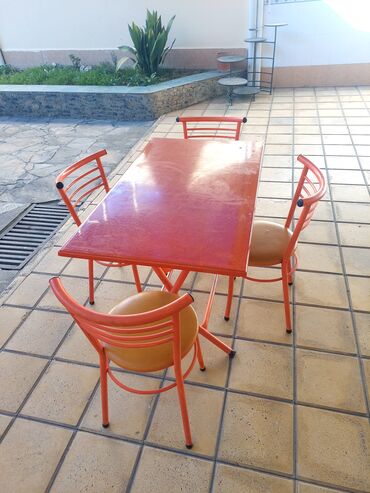 Metal karkaslı stol və 4 stul dəsti