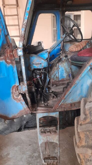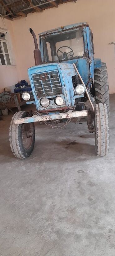 Mavi rəngli MTZ Belarus tipli təkərli traktor.