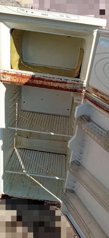 İki qapılı NORD soyuducu - Üst kamera: dondurucu bölmə, metal rəfli - Alt kamera: soyuducu bölmə, 3 ədəd şüşə rəf, tənzimlənə bilən rəf yerləri - Tərəf qapısı: 2 ədəd geniş balon/şüşə üçün rəf, yu...