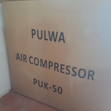 - PULWA PUK-50 Air Compressor – 2HP gücdə kompressor. Qutuda təkərlər, şlanq və qoşma aksesuarları ilə gəlir.