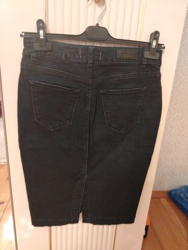 45manata alinib geyinilmiyib hec tezedir 25manata satilir Denim yubka - Model: klassik straight/kalkana kəsim, dizə yaxın uzunluq - Material: mavi cins parça (orta qalınlıq), az elastik - Rəng: tü...