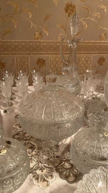 Şüşə/kristal şirniyyat qabı – qapaqlı, naxışlı model