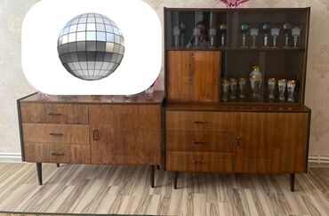 - 1 ədəd böyük vitrin-komod: yuxarı hissədə şüşəli vitrin rəfləri (qədəh və kolleksiya üçün), mərkəzdə kilidli qapı, aşağıda geniş komod hissəsi