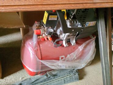 - Qırmızı gövdəli elektrik hava kompressoru: manometr və tənzimlənən reduktor, sürətli qoşulma çıxışları, təhlükəsizlik klapanı, daşıma üçün üst tutacaq. Boya tapançaları, pnevmatik alətlər, şin şişirdilməsi və təmizləmə işləri üçün uyğundur.