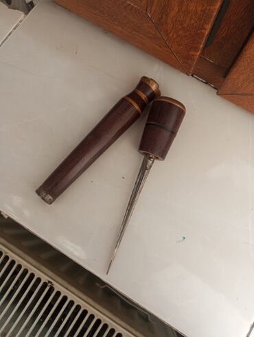 - Material: cilalanmış tünd rəngli ağac dəstək, metal uclu iynə (biz tipli).