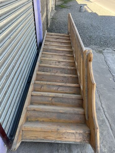 Məhsul: Taxta pilləkən dəsti və korkuluklar Təsvir: - Material: Təbii ağac (şpon deyil), teksturası görünən massiv lövhələr - Komplekt: Pillələr, podstupenlər, yan taxtalar, meydança lövhələri, ko...