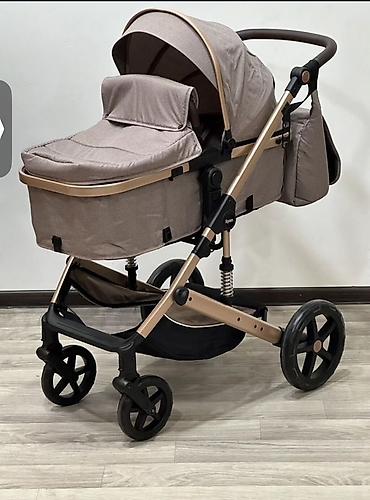 Uşaq arabası – 2-in-1 transformasiya olunan model (körpə beşiyi və oturacaq bloku) Xüsusiyyətlər: - Rəng: boz tekstil, qızılı çərçivə, dəri görünümlü qəhvəyi tutacaqlar - Çərçivə: möhkəm alüminium...