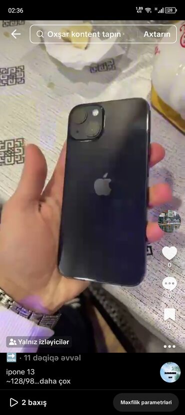 Apple iPhone 13 – qara rəng Yenidir. Ümumiyyetle işlənməyib. Usag üçün hədiyyə alınıb amma çətin oldugu üçün işlədə bilmedi. 1653manata kreditlə alınıb. Krediti də ödənilir. Dəyərindən ucuz satılır...