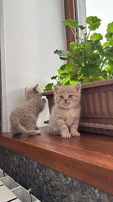 - Qeyd: Şəkillərdə eyni səbətdən iki balaca pişik görünür; yumru yanaqları və sakit baxışları Britan cinsinə məxsus tipik xüsusiyyətlərdir.