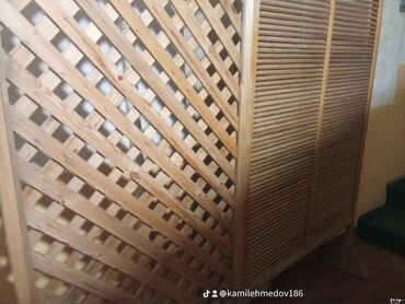 Taxta panellər və metal tor ilə hazırlanmış otaq arakəsməsi, məkanları bölmək üçün praktik həll təklif edir. Bu arakəsmə, həm məxfilik yaratmaq, həm də dekorativ bir element kimi istifadə edilə bil...