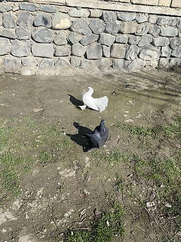 Ağ rəngli göyərçin cütü - Növ: dekorativ/oyun göyərçinləri - Rəng: tam ağ bədən, quyruqda qara ləkəli tüklər - Ayaqlar: tüklü - Gözlər: qara - Cüt kimi saxlanılıb - Videoda görünən quşlar təklif o...