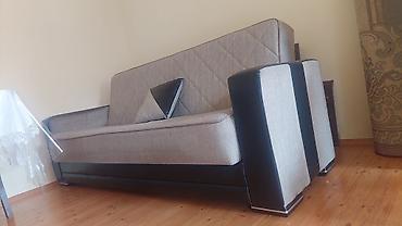 Divan – açılan, bazalı model - Üç nəfərlik, iri oturacaq və yüksək arxalıq - Açılıb yataq kimi istifadə olunur; alt hissədə geniş baza (çəkmə) saxlama bölməsi - Yumşaq, toxumalı parça üzlük; neytr...
