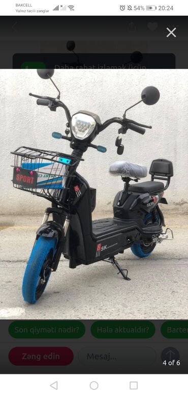 Elektrik skuter/mopedlər – fərqli rəng və dizaynda şəhər içi sürüş üçün. Xüsusiyyətlər: - Elektrik ötürücü: səssiz, yanacaq sərfiyyatı yoxdur - Şarjla işləyir, məişət prizindən doldurula bilir - Ö...