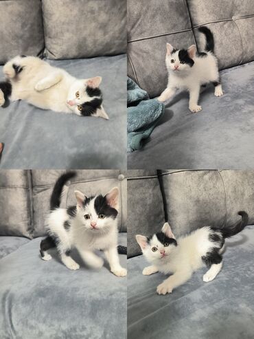 Mətn: Pişik balaları – 1 dişi, 3 erkək Təsvir: - Sevimli pişik balaları şəkillərdə göstərilib: 1 nəfər tüklü qara dişi, 3 nəfər zolaqlı (təkir) erkək. - Yaşları kiçik, aktiv və oyuna maraqlıdırlar...