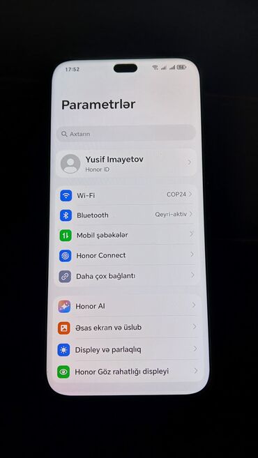 - AI funksiyaları: Honor AI, əsas ekran və üslub, Display və parlaqlıq, Göz rahatlığı rejimi